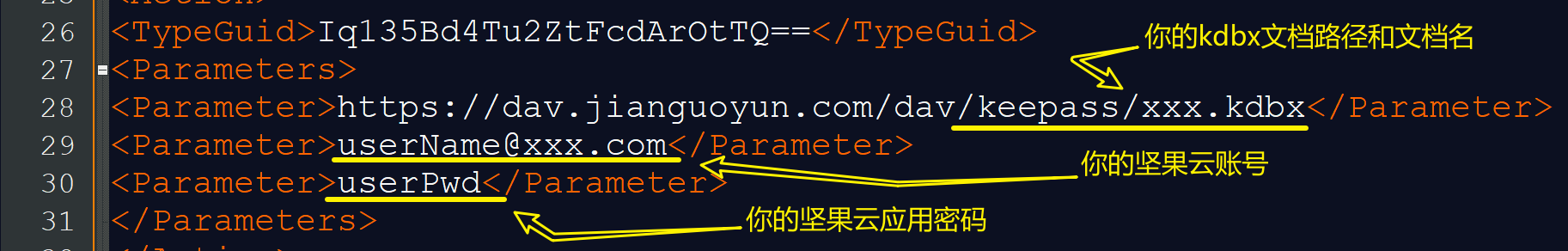 <Parameter>https://dav.jianguoyun.com/dav/keepass/xxx.kdbx</Parameter>