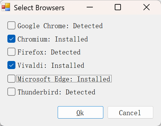 👉特别的,如果你使用的是Vivaldi浏览器,你应该额外勾选〔Chromium 〕,如下👇: