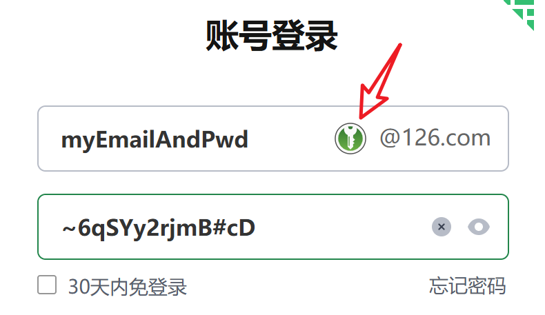 👉然后,当你浏览网页时,如果KeePassXC-Browser 检测到有匹配的密码输入场景时,便会添加KeePassXC-Browser 标识,只需要鼠标一点就可以自动填充了。如下👇: