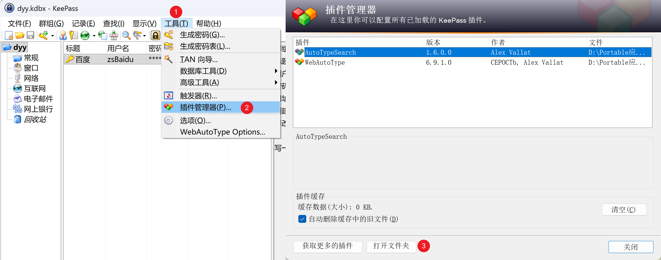 你可以通过Keepass 来找到并打开Plugins 文件夹,如下👇