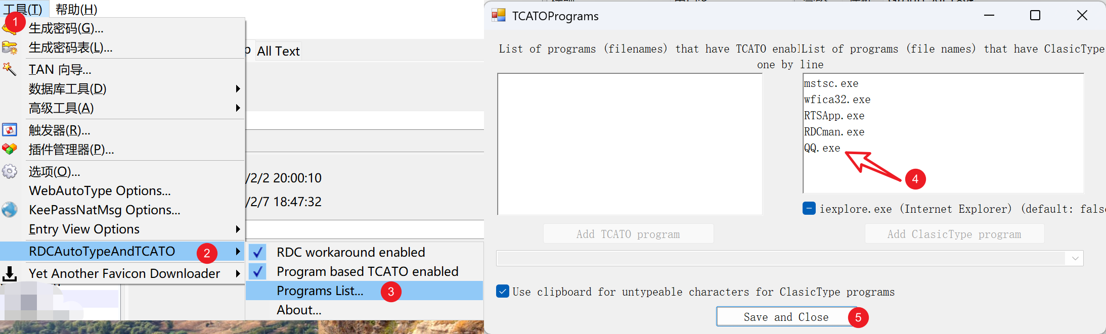 安装插件后,我们需要在RDCAutoTypeAndTCATO 的ProgramList 中添加QQ.exe ,如下👇: