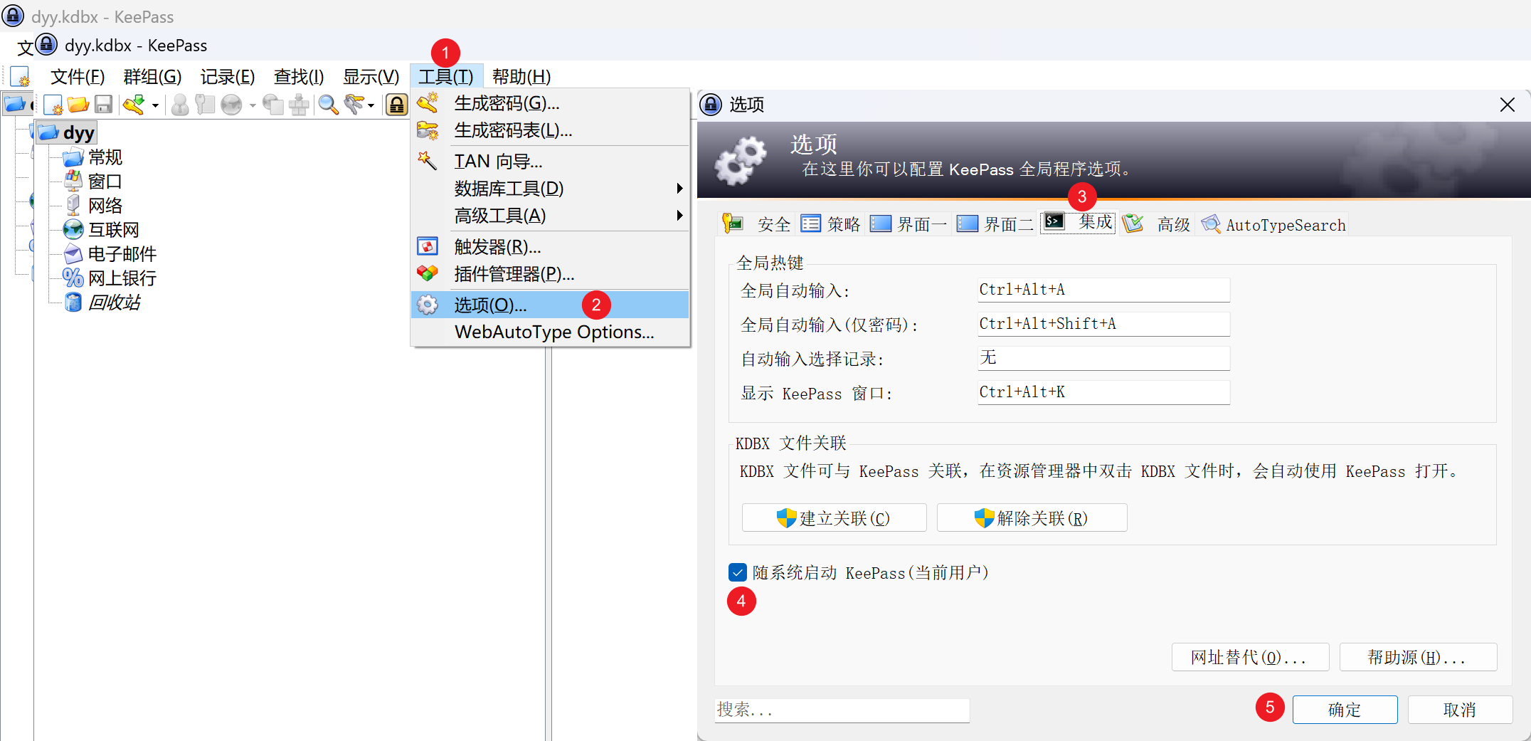 Keepass 的全局热键可以在〔工具〕/〔选项〕中设置,如下👇: