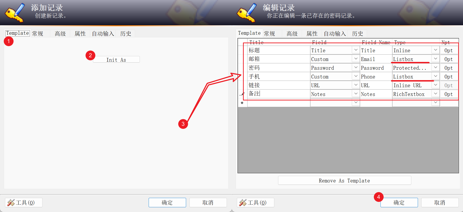 KPEntryTemplates模板插件可以让我们定义密码记录的录入字段和键入规则,以我们使用起来更加的方便。