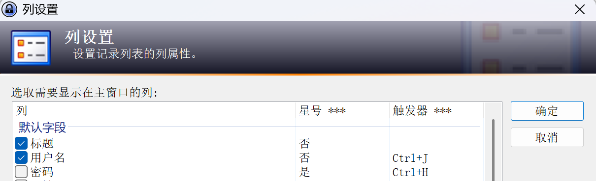 你可以通过设置〔显示〕/〔窗口布局〕来调整密码记录的显示方式,如下👇