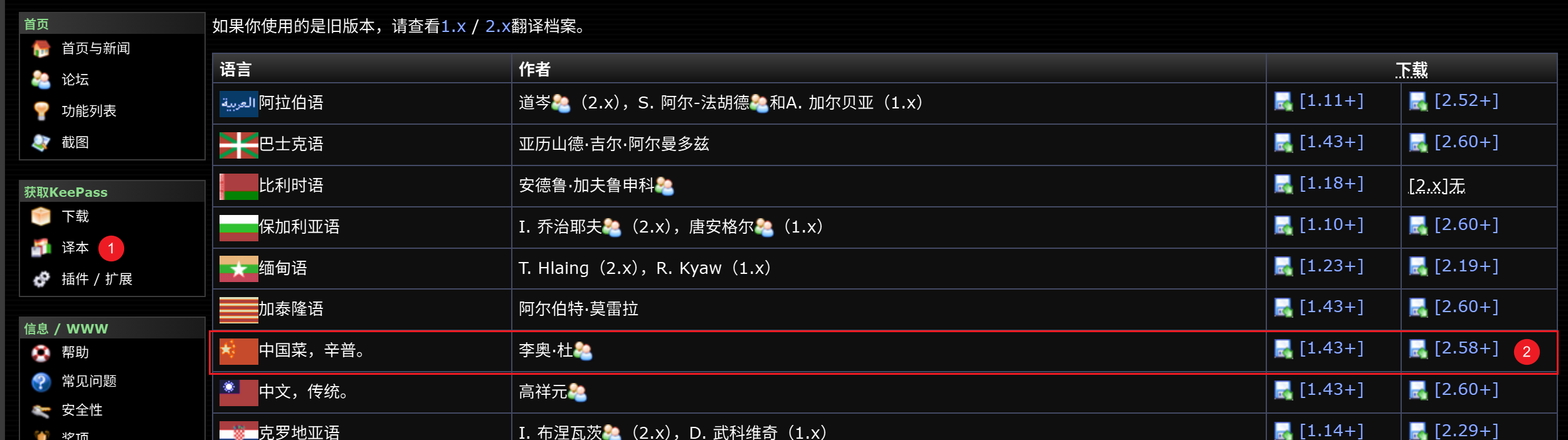 在 Keepass 的官方网站中,你可以找到👉各种语言包,👇如下