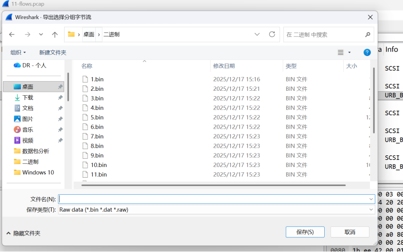 步骤二:将所有out包里的Leftover Capture Data数据导出分组字节流