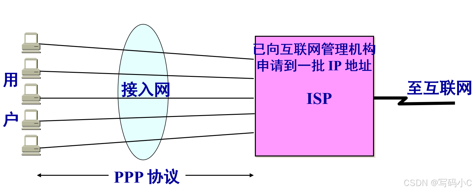 在实际应用场景中,用户通常通过接入网连接到互联网服务提供商 (ISP)。当用户计算机与 ISP 进行通信时,数据链路层所使用的协议即为 PPP 协议。
