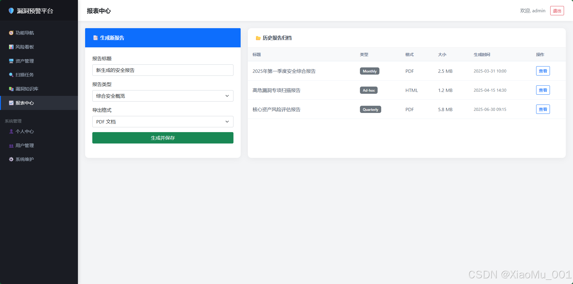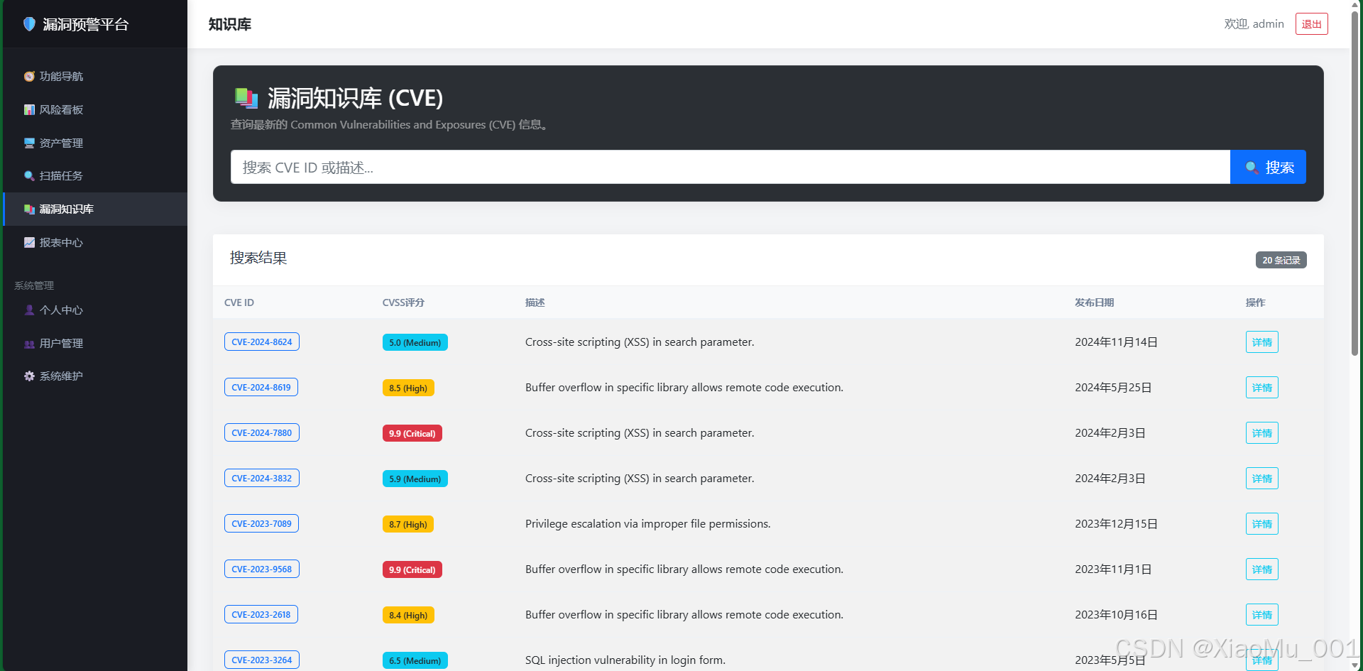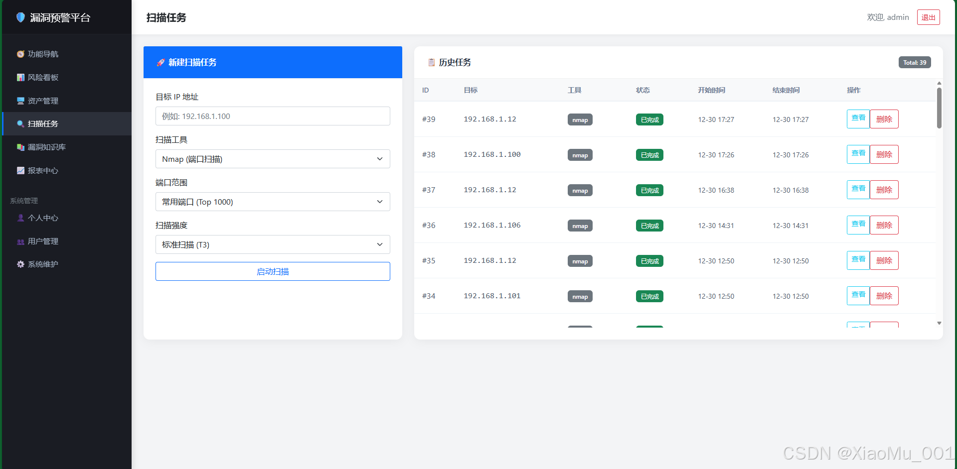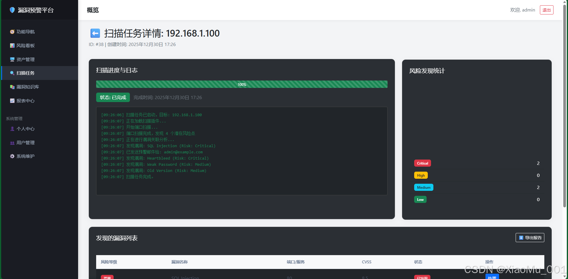 - 自动化扫描:集成主流扫描工具,支持定时扫描和手动触发