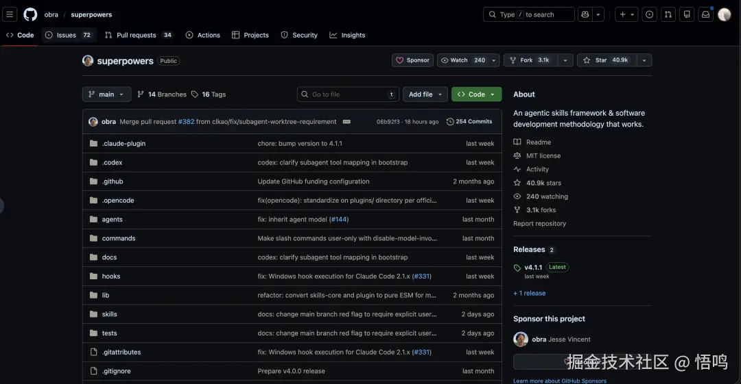 github.com/obra/superp... 另外一个比较火爆的 Coding 相关的仓库。