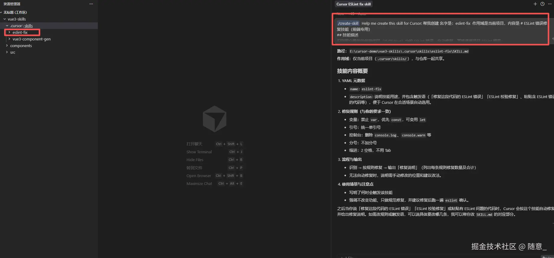 三、实操 Demo:用 Cursor 玩转 Agent Skill