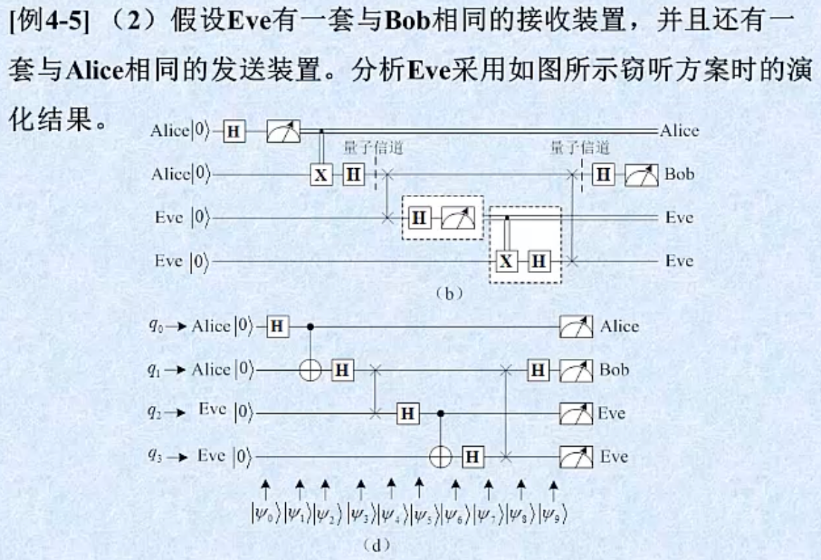 假设存在监听者 Eve,以下是监听过程量子态演变