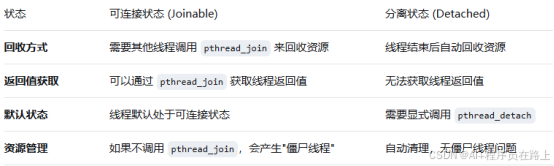 pthread_detach(threads[i]); 用于将线程threads[i]设置为分离状态,这样当线程结束时,系统会自动回收其资源,无需其他线程显式地等待它结束。这适用于那些不需要同步等待结果的后台任务。