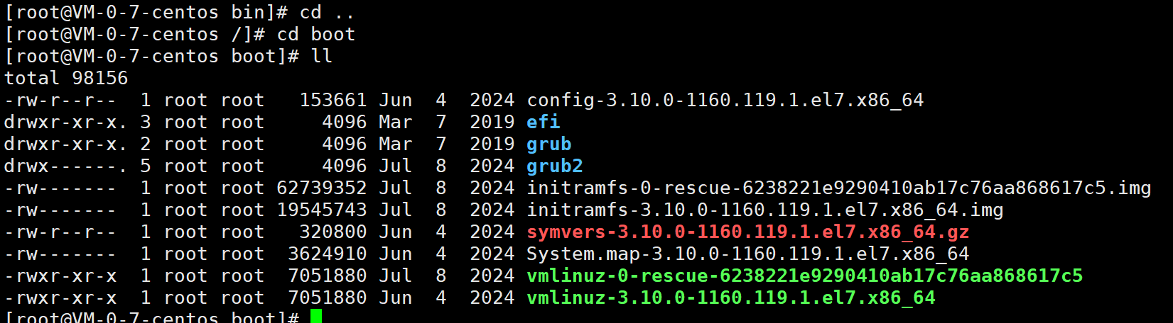 在/boot中,主要存放开机会使用到的文件,包括Linux内核文件和开机所需的配置文件等