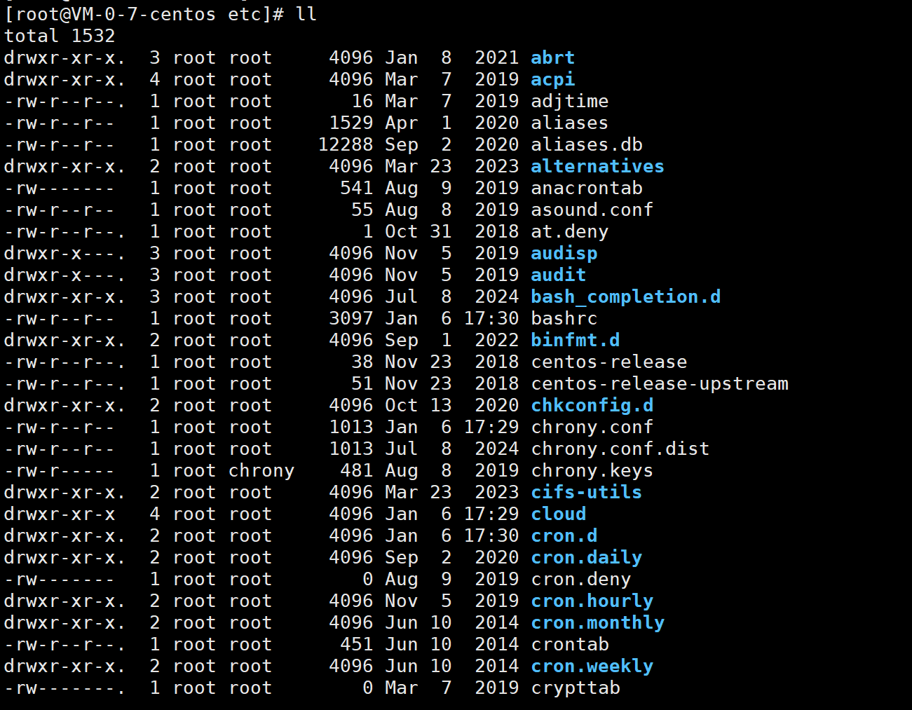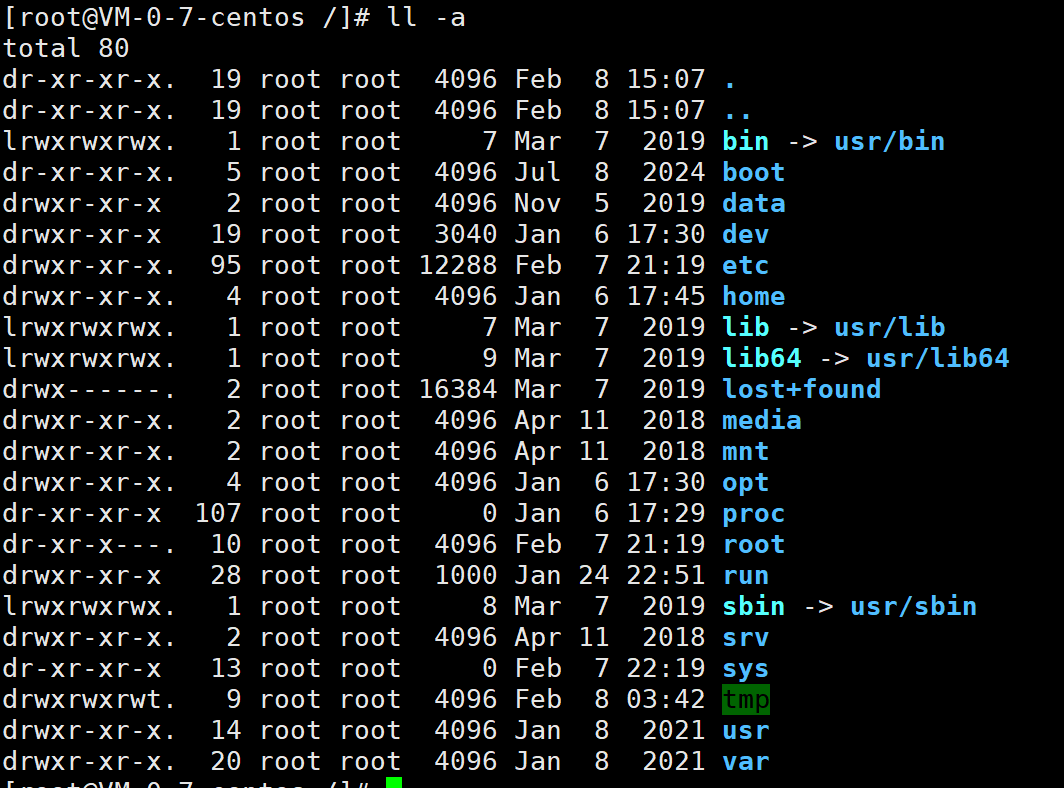 接下来ll -a查看根目录下的所有文件