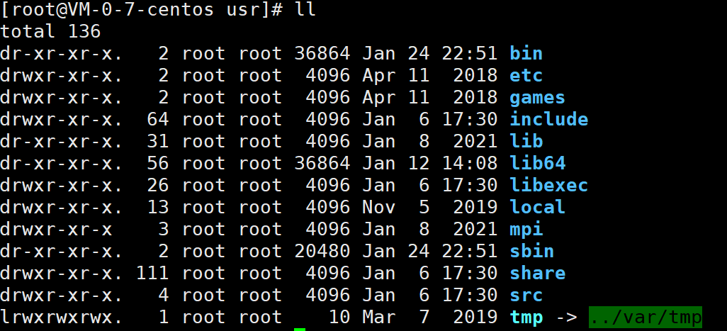 **/usr/local:**root用户在本机自行下载安装的软件,建议放置在此目录