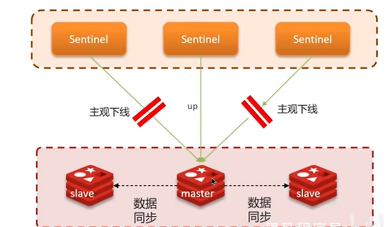 主观下线(Subjectively Down,SDOWN) :单个哨兵节点(sentinel节点)在规定时间内没有收到某个实例的