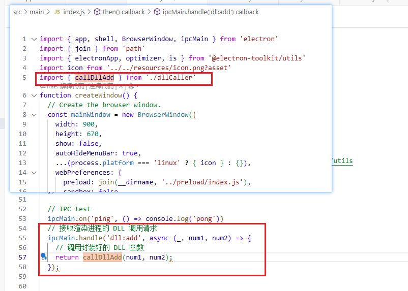 - 创建一个dll调用js文件,写调用函数,引入到主进程(直接写在主进程也是可以的)