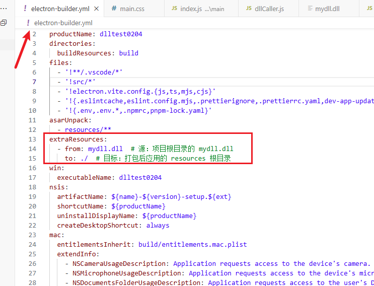 到这里如果直接打包运行exe文件,会出现报错说找不到dll文件资源,因为前面我们把dll文件放在根目录下,打包时没有自动复制到包里,导致报错,所以我们需要新增以下配置,让dll文件打包时能自动复制到安装包中。