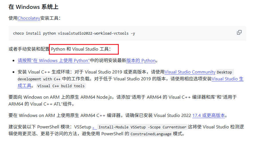 查询ffi相关库,发现ffi-napi已经长期未维护,适用于版本较低的旧项目,且容易出现兼容性问题,所以我们采用@napi-ffi/ffi-napi依赖,这个是基于前者新拉的分支,支持前者的api并且对node版本20+的兼容性更好。在下载依赖之前,需要进行前置的环境配置。