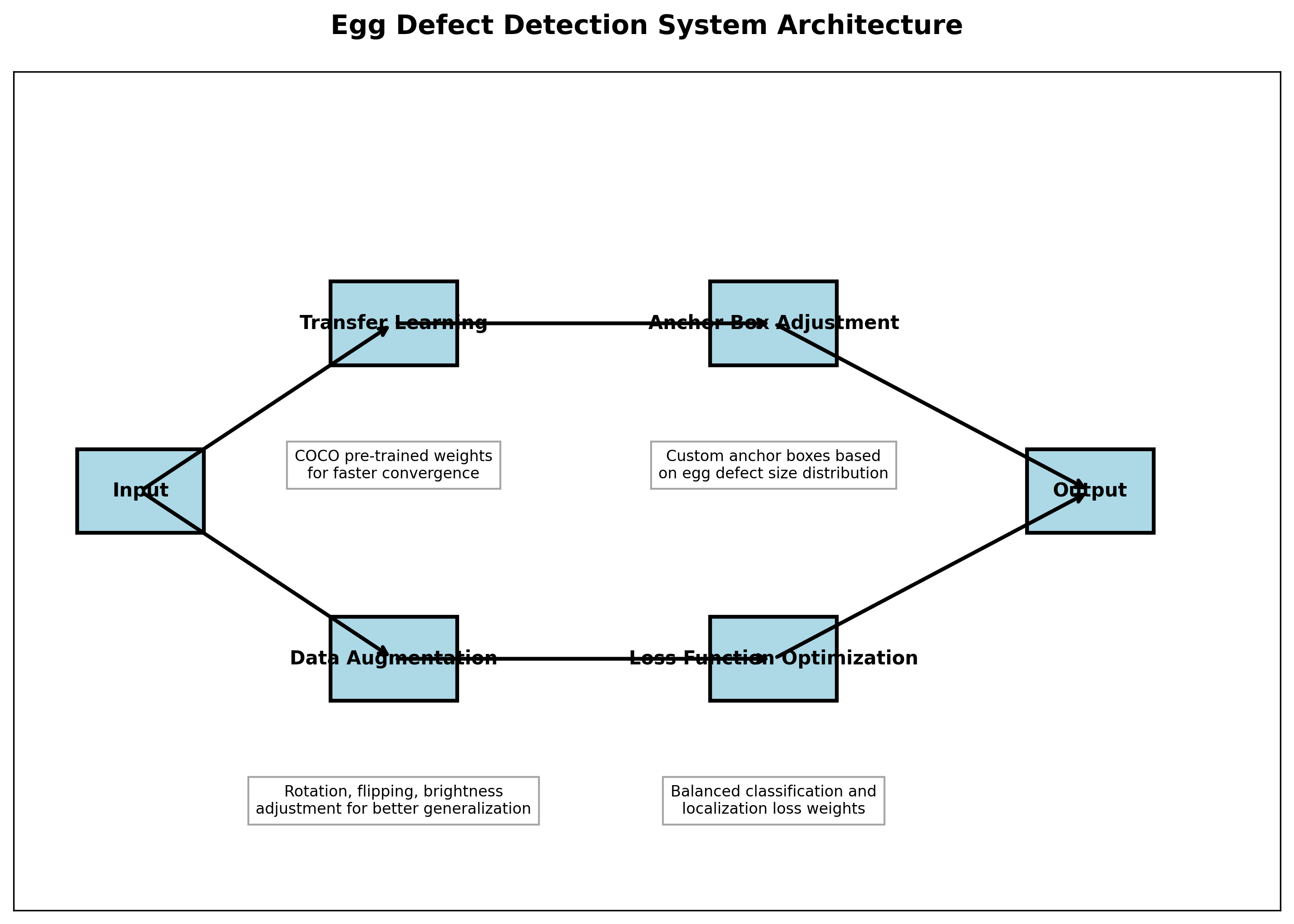 - 锚框调整:基于鸡蛋缺陷的尺寸分布,重新设计了锚框尺寸,提高检测精度。