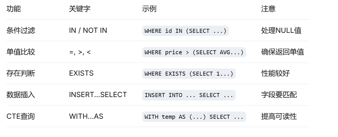 记住:学习SQL就像学做饭,开始可能手忙脚乱,多做几次就熟练了!遇到问题不要怕,多查资料多实践,你一定能掌握子查询这个强大工具! 🚀