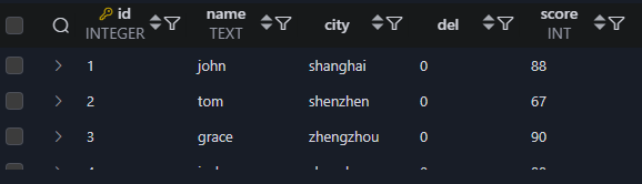 比如说上图的数据表,这是部分截图,表名叫table_tom,假如要按city字段进行分组,计算score各字段总和