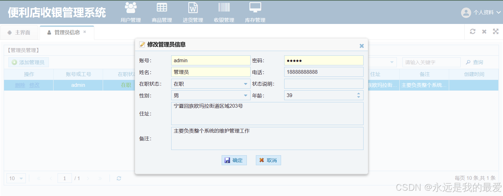 a) 用户管理:主要是针对系统的收银员信息和管理员账户信息进行添加、修改、查询和删除等操作;