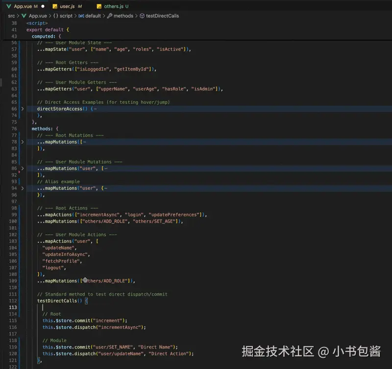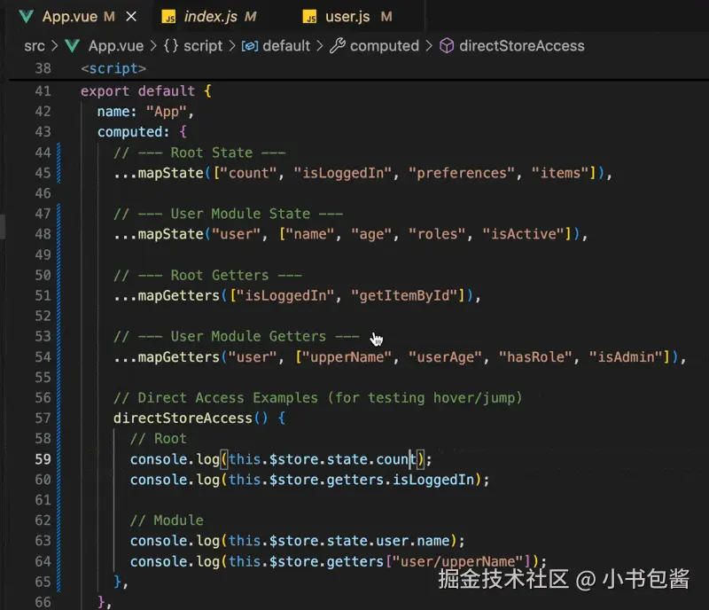 从组件中直接跳转到 Vuex Store 的定义处。