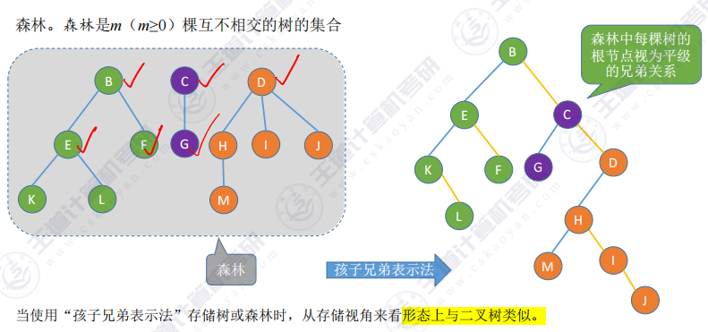 - 注意 :森林中各棵树的根节点视为平级的兄弟关系