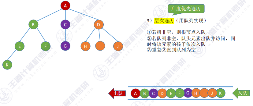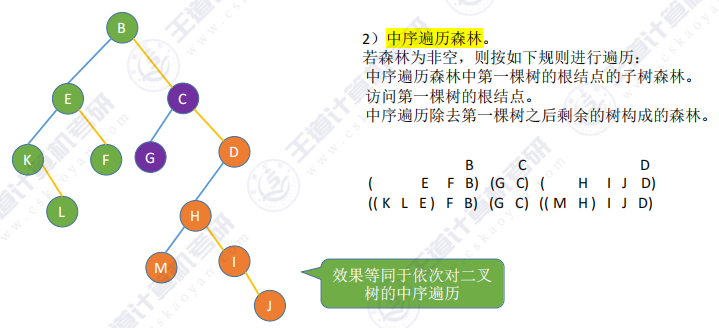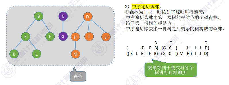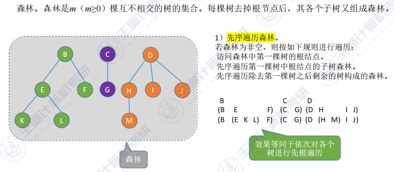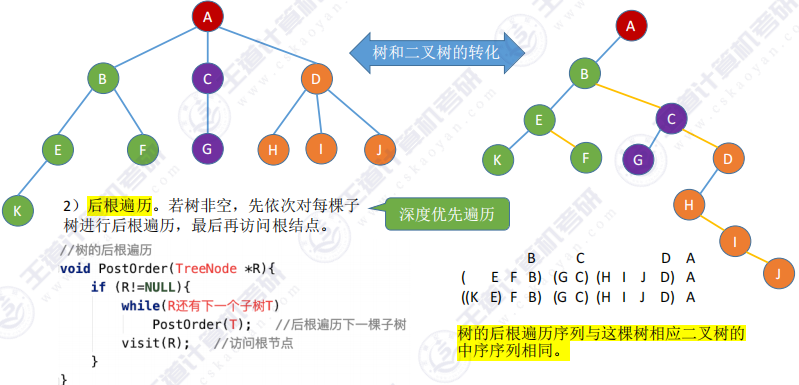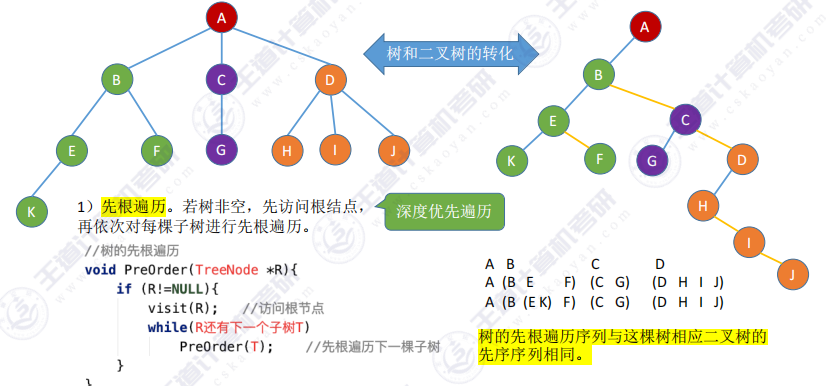 先根遍历 :树的先根遍历序列与这棵树相应二叉树的先序序列相同
