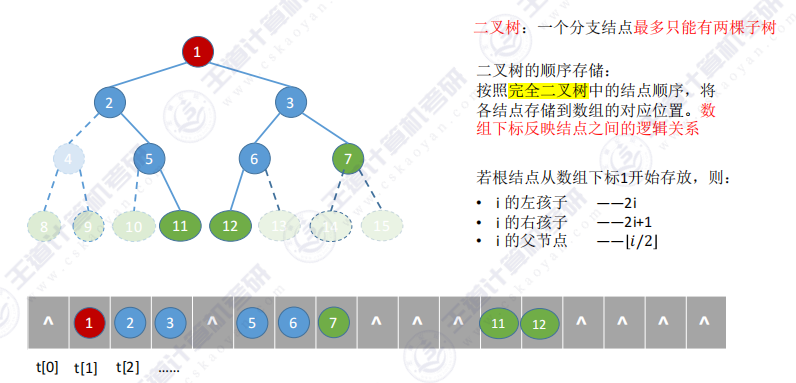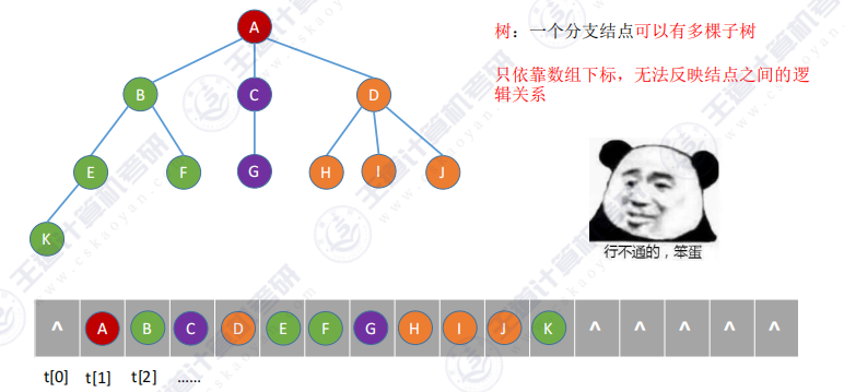 - 使用二叉树的顺序存储法,无法反映树的逻辑关系