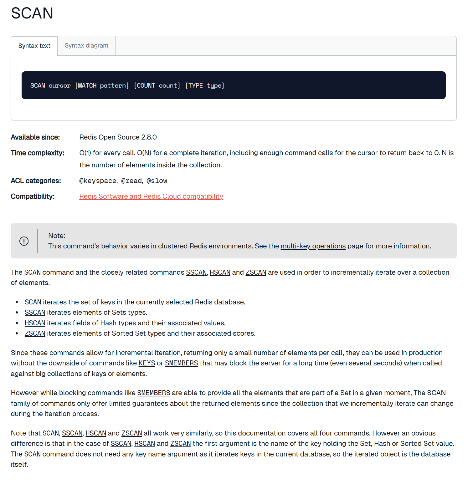 cursor 有光标的意思,是 scan命令的必选参数(第一个参数),本质是一个无符号整数(非负整数)。光标指向了当前遍历的位置,但是,需要注意,光标不保证连续性,光标起始是 0,我们遍历返回了 10 个元素,并不能保证光标此时指向 10,光标是 Redis 内部的 "位置标记",不是键的数量索引,持续的遍历 cursor 可能会前后乱跳,这是正常现象,我们 scan 一次之后,想接着上次的访问,我们就根据返回值给的下次 scan 所需的光标位置继续。