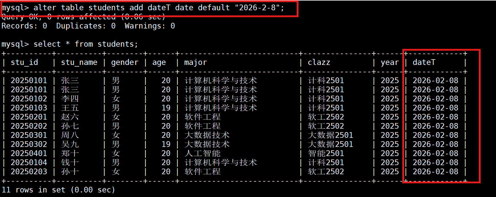 alter table 表名 add dateT date DEFAULT "2025-12-12";