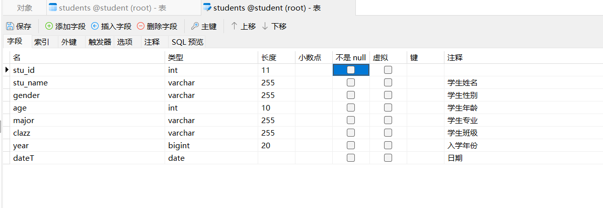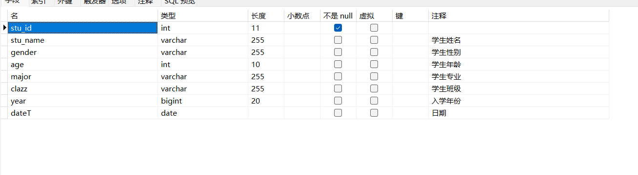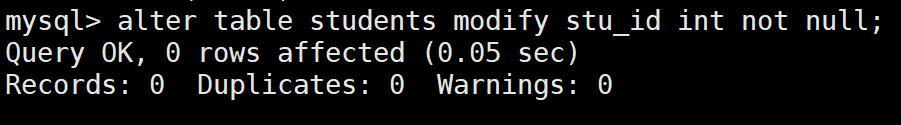 alter table 表名 modify stu_id int not null;