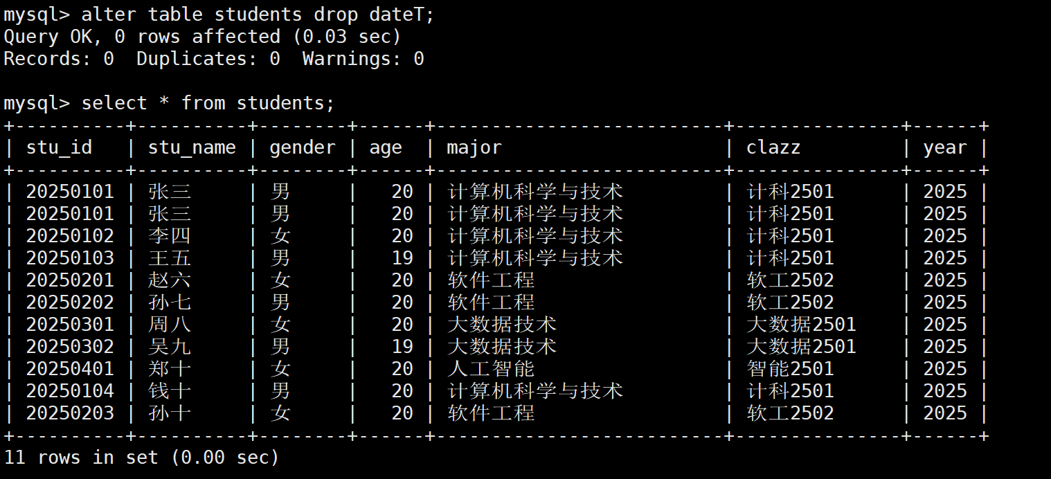 -- 删除字段