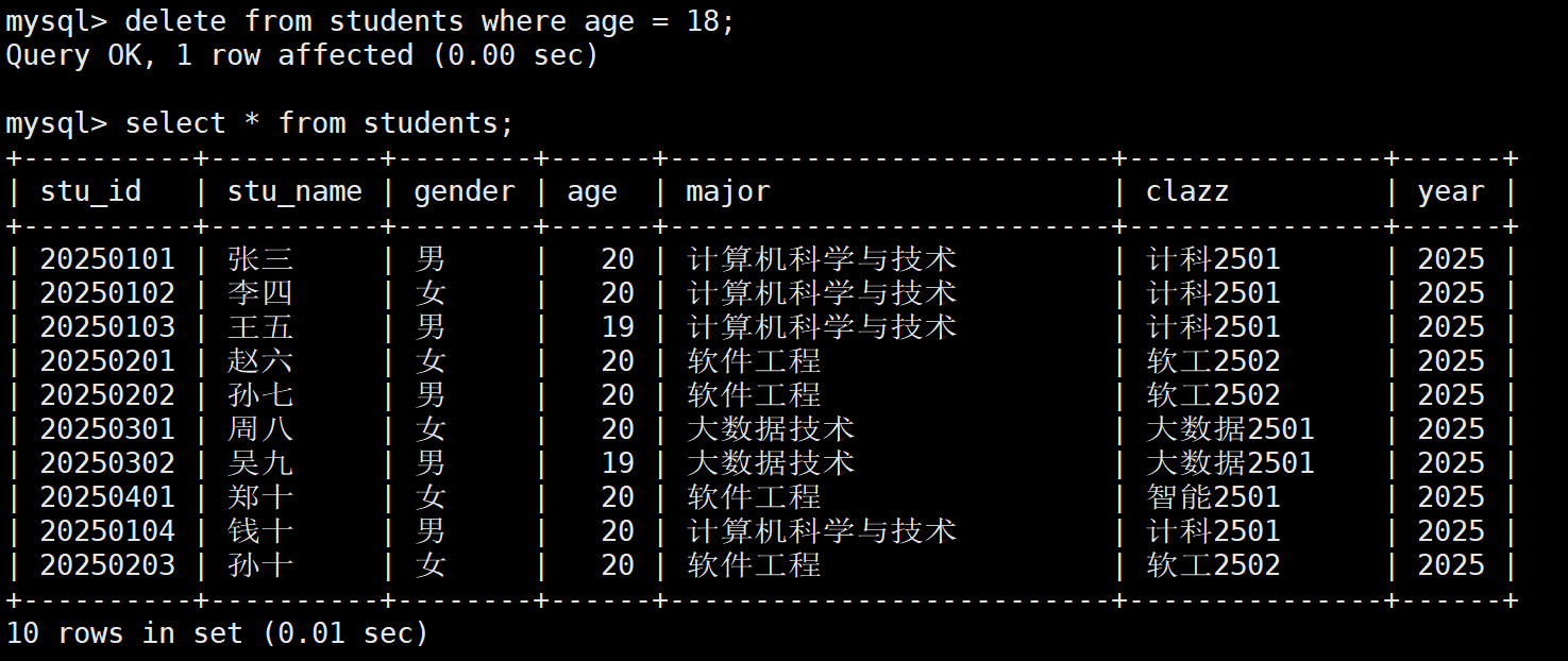 -- 删除年龄大于18的用户
