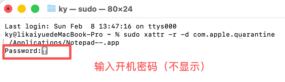 5、输入开机密码(密码不可见)。