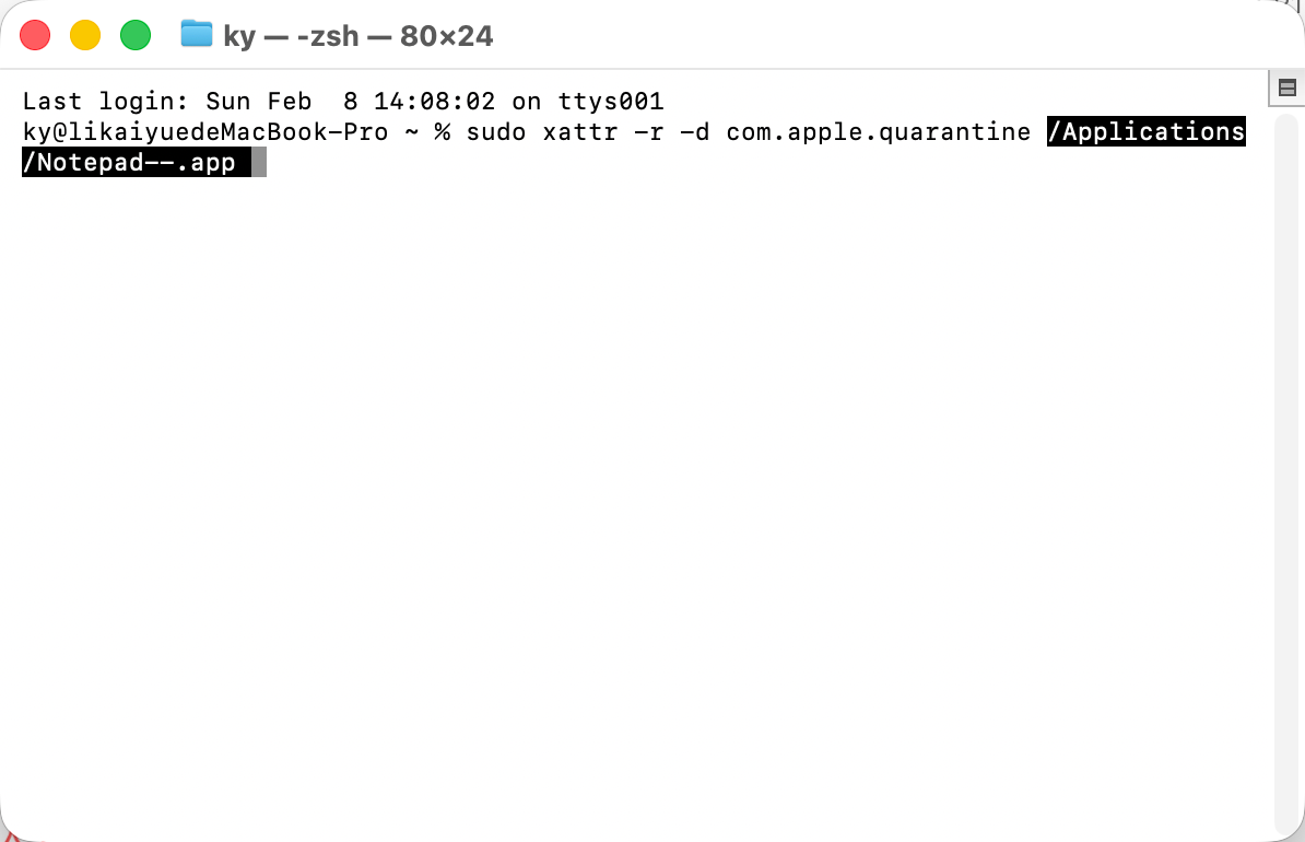 sudo xattr -r -d com.apple.quarantine