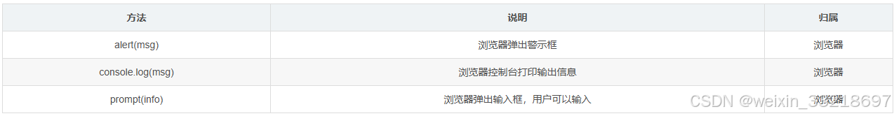 - ECMAScript:ECMAScript规定了JS的编程语法和基础核心知识(比如: 变量、分支语句、循环语句、对象等),是所有浏览器厂商共同遵守的一套JS语法工业标准。