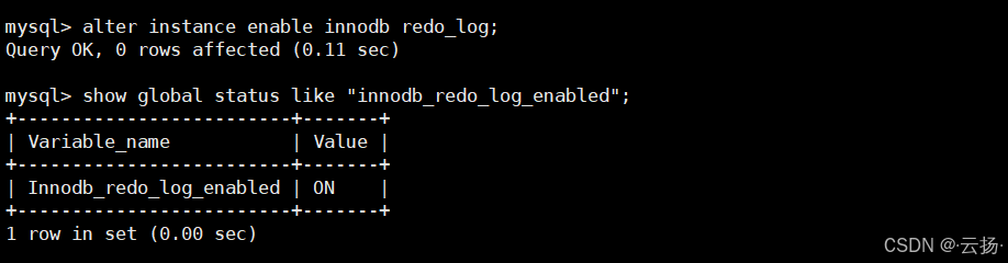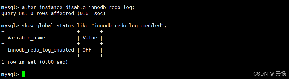 # 1. 禁用 Redo Log(仅支持全局禁用,需 root 权限)
