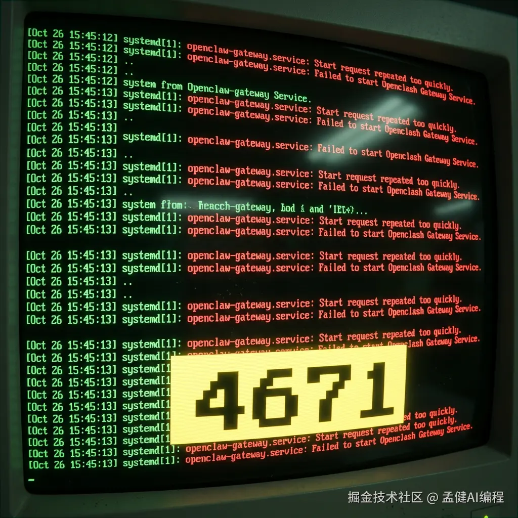 /etc/systemd/system/openclaw-gateway.service):每5秒尝试启动,发现端口被占,立即退出,systemd 又拉起来......