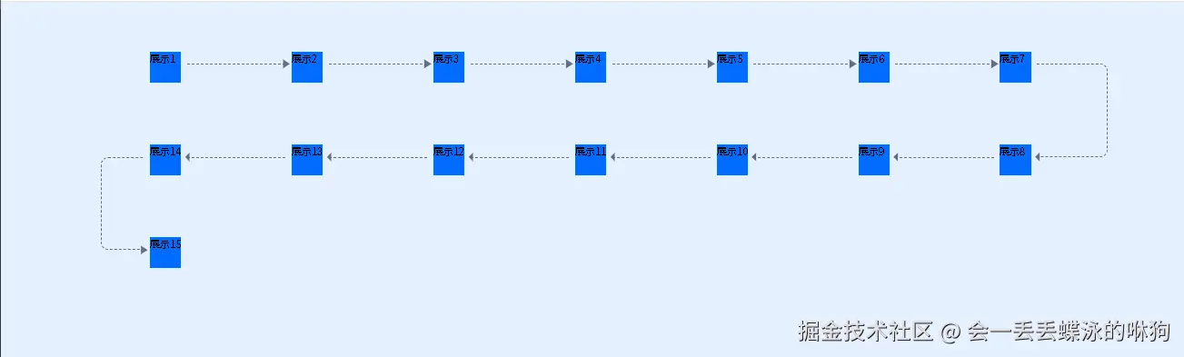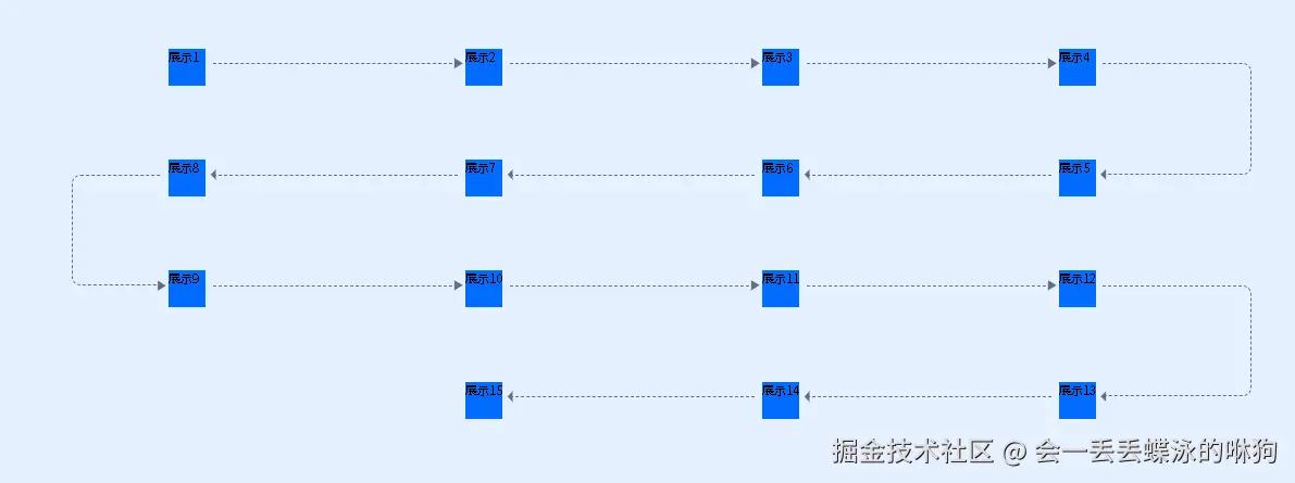 系统采用蛇形流动设计,奇数行从左到右,偶数行从右到左,形成自然的视觉引导路径。