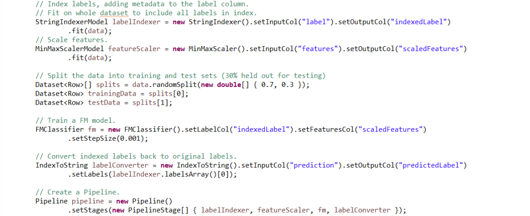 数据分类sample_libsvm_data的标准测试数据集合的部分数据样本,其中,第一列是标签,用于标识数据的分类(二分类),其他列是特征数据(特征值对应的索引号:特征值):