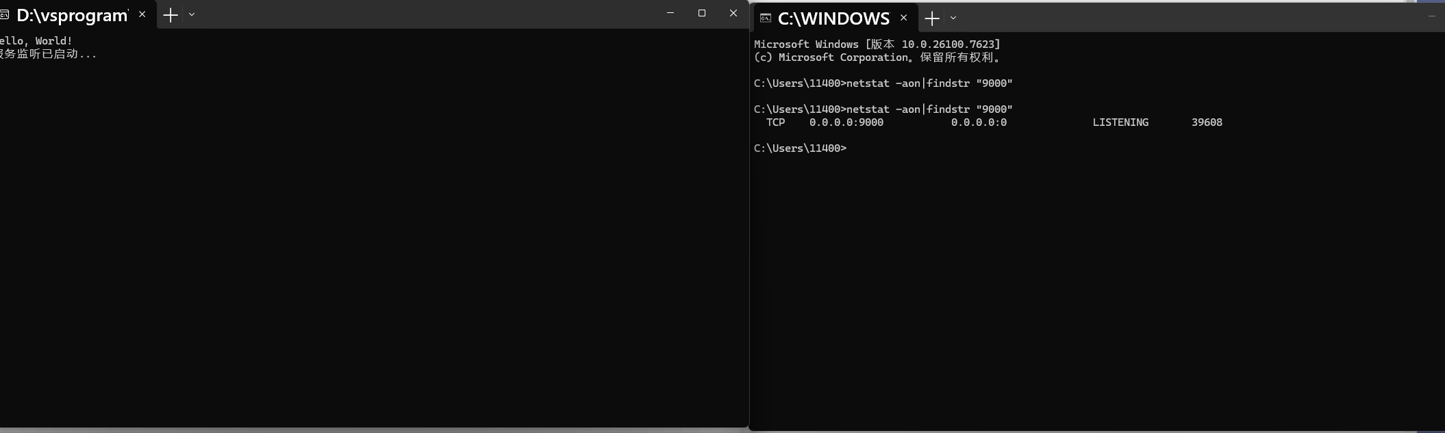 netstat -aon|findstr "9000"