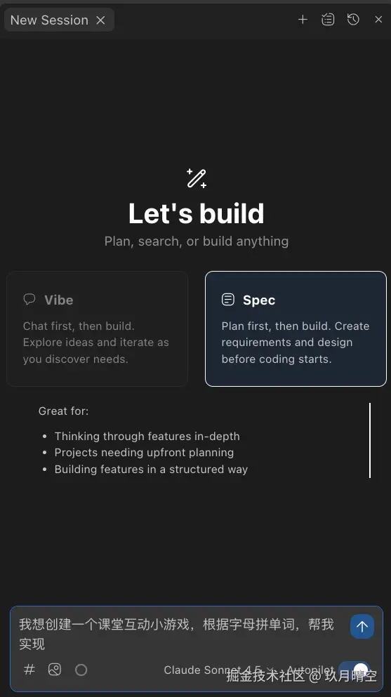 1. 你有一个 Spec(需求文档)📋 "创建字母拼写游戏"