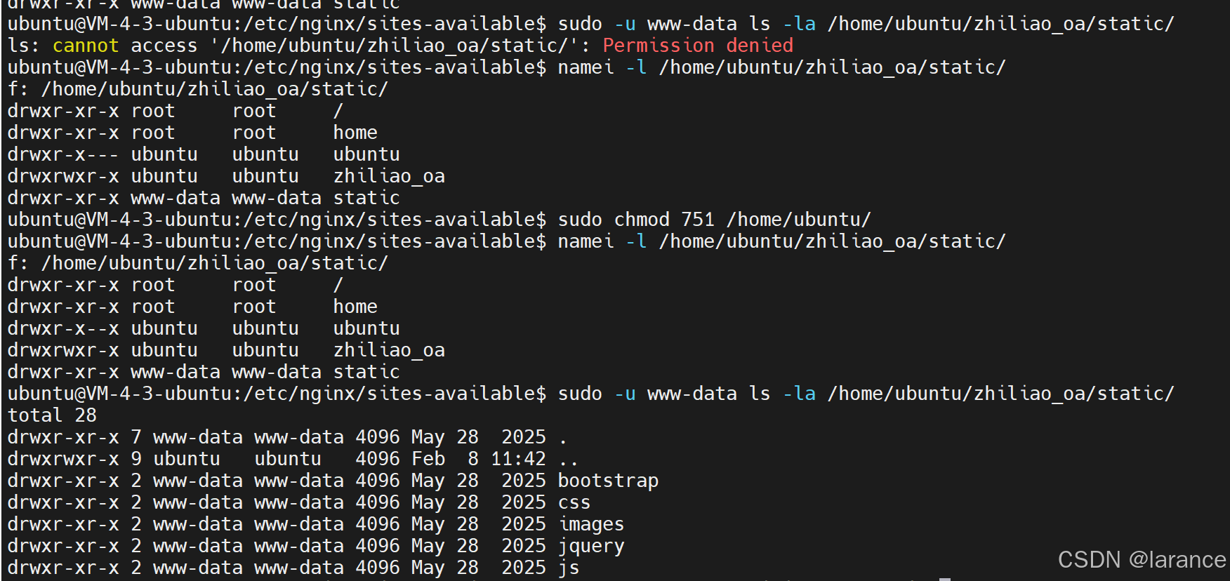sudo chown -R www-data:www-data /home/ubuntu/zhiliao_oa/static/