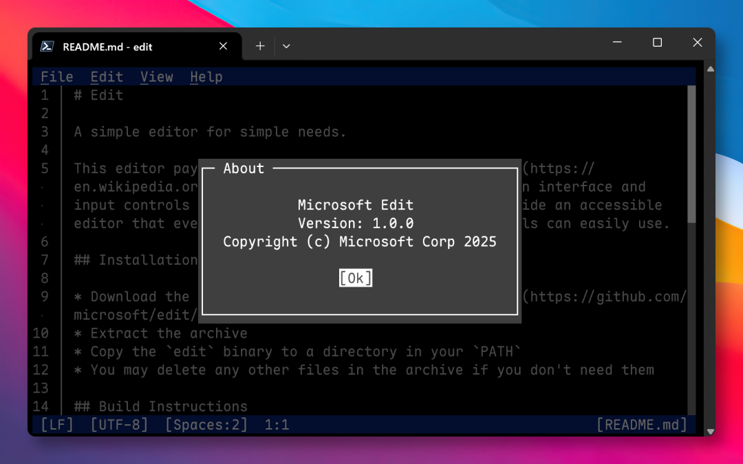 GitHub 项目地址:https://github.com/microsoft/edit
