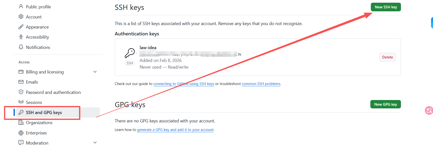 步骤 4️⃣:在 GitHub 上添加 SSH Key