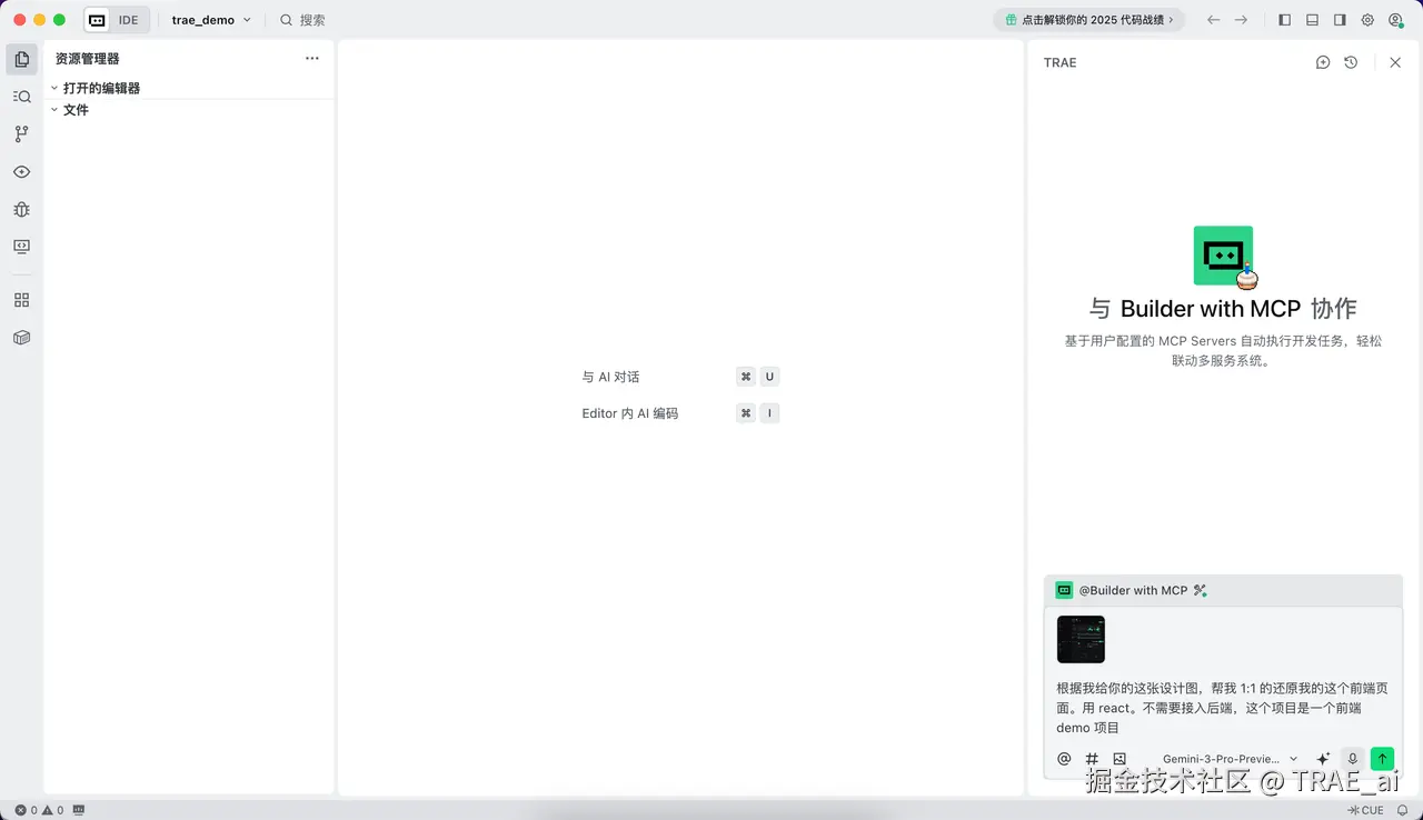 "嘴替"编程: 一张截图、一个 Figma 链接,直接"喂"给 TRAE,即刻生成高保真 HTML 页面。