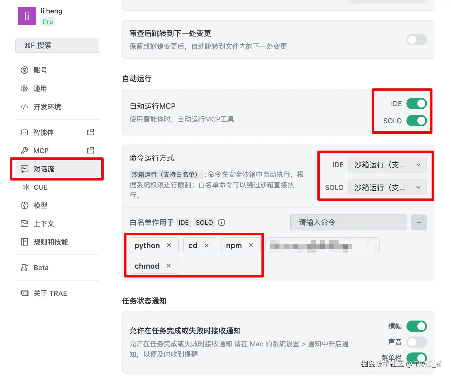 TRAE 配置清单:
